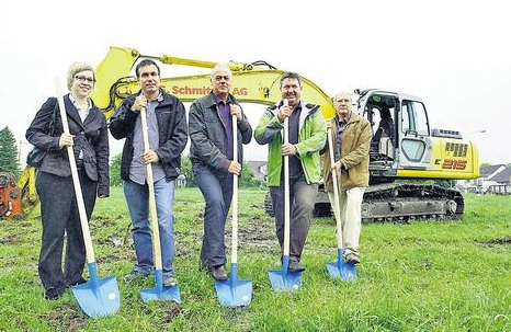 Max TinnerWerden Mehrfamilienhäuser gebaut, haben die Bauherren heute meist gut situierte Familien im Sinn, die sich grössere Wohnungen mit einem gehobeneren Ausbaustandard leisten können. Mit seinen Single-Roof-Wohnungen für junge Erwachsene, die sich ihre erste Wohnung suchen, für noch oder wieder Alleinstehende, für Alleinerziehende, aber auch für Paare hat Peter Frei, Inhaber der Arcon Handels AG, eine Marktlücke entdeckt. Single Roof heisst so viel wie ein Dach für Alleinstehende. Entsprechend handelt es sich dabei um kleinere, günstige Wohnungen. 18 davon baut die Arcon Handels AG jetzt an der Eichbergstrasse in Oberriet. Gestern war Spatenstich. Anbändeln in der Waschküche